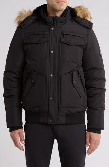 - Faux fur trimmed hood