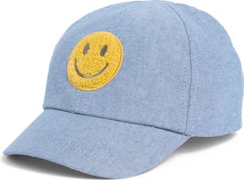 Keep your baby shaded with cotton baseball cap adorned with a textured smiley patch.
