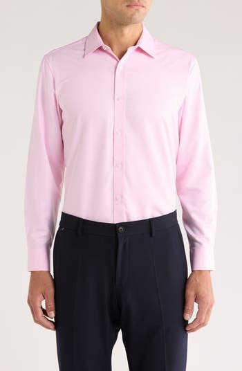 Comfortably stretchy and lightweight, this trim-fit shirt resists wrinkles and pairs well with dressier looks to keep you looking fresh all day.