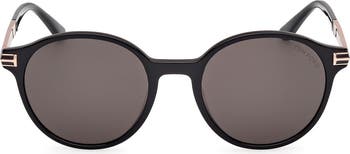 A sleek round silhouette brings classic appeal to these slim sunglasses fitted with CR-39 lenses.