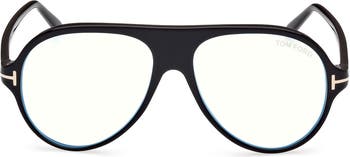 Bold pilot frames intensify the modern appeal of Italian-made glasses featuring T-brand hardware at the temples and practical blue-light-blocking lenses.