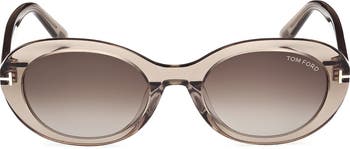 Exude confidence in these designer sunglasses shaped in an retro-reminiscent oval silhouette with gleaming temple accents.