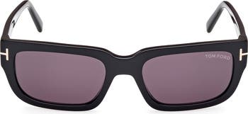 Gleaming 'T' temple accents bring brand distinction to these rectangular sunglasses fitted with CR-39 lenses.