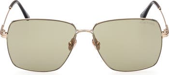 A sleek square silhouette lends retro appeal to Italian-crafted sunglasses fitted with protective, tinted lenses.