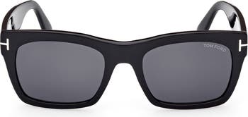 Sleek square frames in a classic silhouette display some T-logo gleam at the temples on these Italian-crafted sunglasses with scratch-resistant CR-39 lenses.