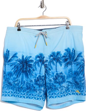 Quick-drying fabric enhanced with four-way stretch keeps you moving comfortably in and out of the water in volley-length swim trunks topped with a comfy tie waist.