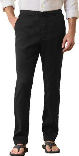 Topped with an easy elastic waist, these flat-front cotton-and-linen pants are kissed with stretch for breathable comfort that moves with you.
