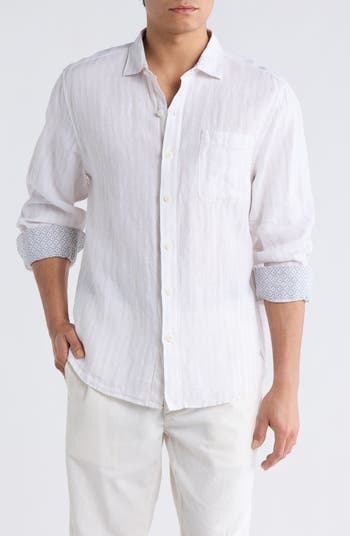 Pure-linen fabrication brings a crisp texture yet lightweight feel to a button-up shirt that has you looking sophisticated from day to night.