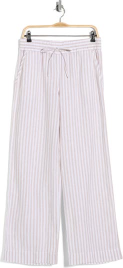 Lightweight linen means you'll feel great all day in these striped, wide-leg pants that are topped with an adjustable drawstring waist.