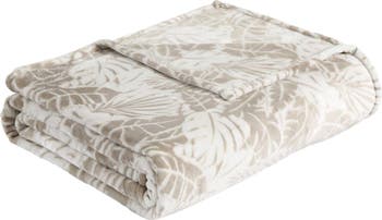 Snuggle up under this plush fleece blanket featuring a tropical print for island-inspired style.