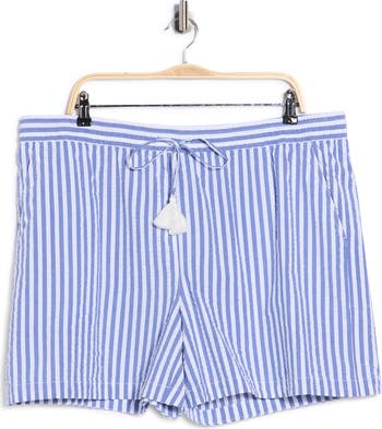 Breathable stretch cotton keeps you cool and comfortable in these striped shorts styled with a pull-and-go waist and handy pockets.