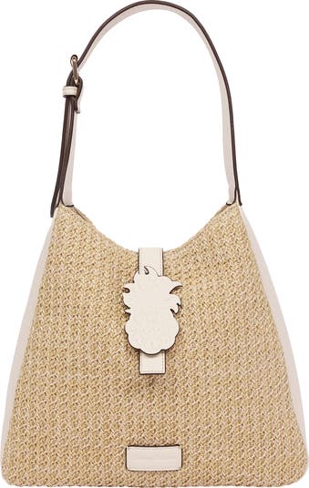 Logo Tab Raffia Shoulder Bag