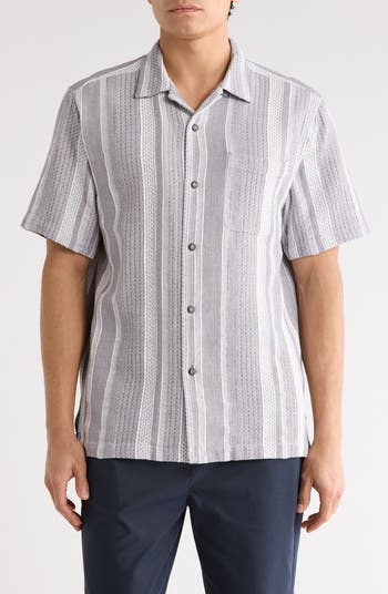 Textured stripes of muted colors make a go-to favorite of a camp shirt that's crafted from soft cotton and designed to take you from sunny days to casual nights. The easy fit gives you room to move or relax in breathable comfort.