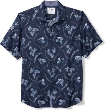 Get ready for your next vacation to Disney World in this short-sleeve button-up shirt featuring an allover tropical Mickey Mouse print.
