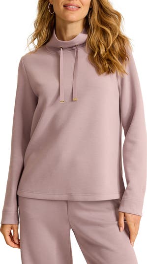 A hoodie-inspired neckline furthers the casual vibe of this ultrasoft sweatshirt made of a pill-resistant spacer knit.