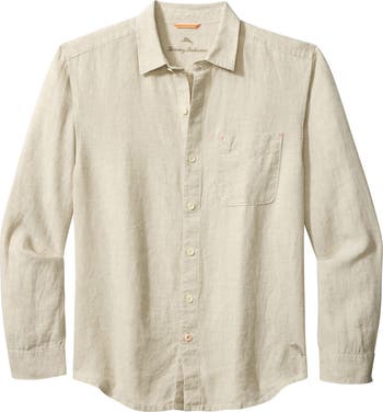 A breezy linen shirt in a laid-back, relaxed fit offers effortless style for the casual gentleman.