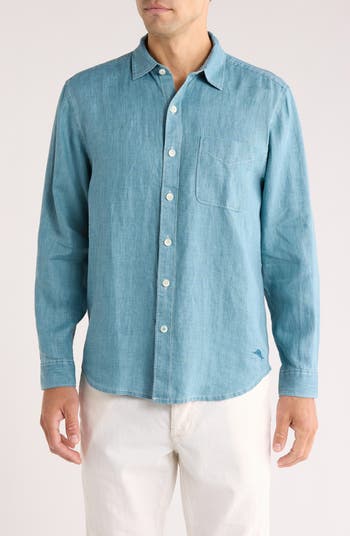 A breezy linen shirt in a laid-back, relaxed fit offers effortless style for the casual gentleman.
