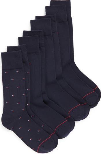 This pack of knit dress socks comes in an assortment of solid hues and signature flag prints and are finished with ribbed cuffs that deliver comfort from office hours or after hours.