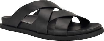 Faux-leather crossover vamp straps elevate the sun-ready vibe of this easygoing slide sandal.