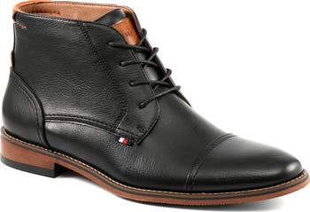Minimal detailing brings maximum versatility to a wardrobe-staple chukka boot shaped from rich faux leather.