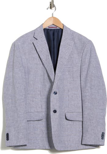 Linen woven in a subtle check furthers the relaxed versatility of a blazer tailored with rounded shoulders and a softly fitted waist. The lightweight feel makes it an ideal choice for semiformal occasions.