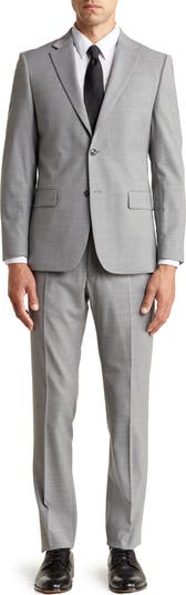 A classic suit constructed from a luxe wool blend features notched lapels and a two-button closure for polished style.