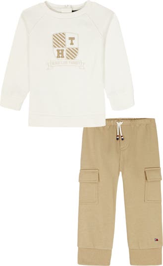 Baby will look cute and stay cozy in this cotton-forward set that pairs a fleece sweatshirt with regal embroidery and cargo pants.