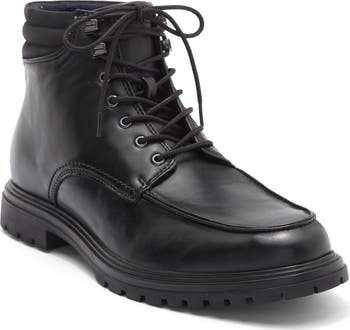 Elevate your cold-weather ensembles with this lace-up boot constructed from faux leather and grounded by a lugged sole.