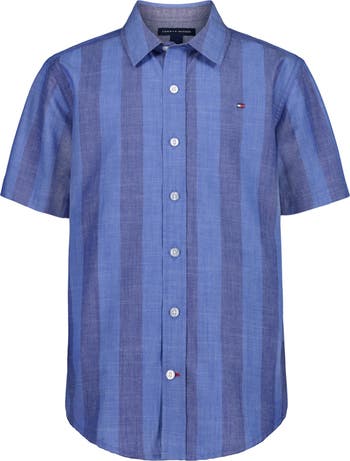 Awning stripes neatly pattern a button-up shirt cut from a breathable cotton blend to combine cool style with everyday comfort.