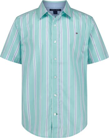 A versatile staple for school and beyond, this smart short-sleeve button-up shirt is cut from a striped cotton-blend and finished with the brand's signature flag embroidery at the chest.
