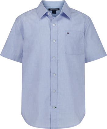 A versatile staple for school and beyond, this short-sleeve button-up is crafted from cotton-forward fabric and features the brand's signature flag embroidery at the chest.