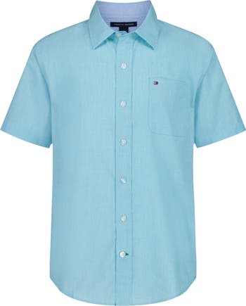 A versatile staple for school and beyond, this smart short-sleeve button-up shirt is cut from pure cotton and finished with the brand's signature flag embroidery at the chest.