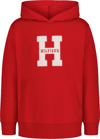 Varsity vibes abound on this boldly-hued pullover hoodie with Tommy's signature H stitched into the chest making it top of the class for your little one.