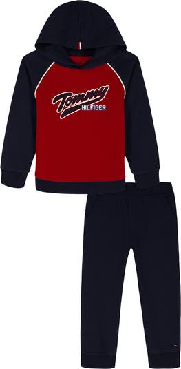 Your little one will be playground-ready in this hooded pullover and joggers set made from a soft cotton-forward blend.