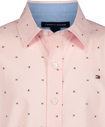 Your kiddo will look picture-perfect in this woven dress shirt framed by breezy short sleeves and topped with a smart spread collar.
