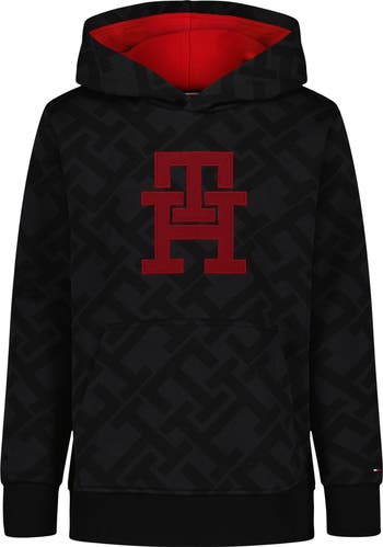 The brand's logo is stacked together at the front of a cotton-blend hoodie designed to keep your kiddo warm and comfortable on laid-back days.