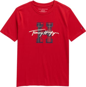 A plaid logo graphic adds signature brand charm to this play-friendly T-shirt cut from breathable all-cotton fabric.