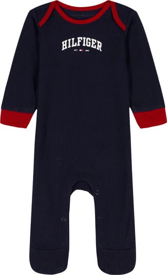 Baby will be comfortable and cozy in this branded footie made from a soft cotton blend that's lightweight, breathable and easy to move around in.
