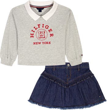 Bring collegiate-inspired styling into baby's everyday look with this set featuring a logo-adorned top paired with a coordinating denim skirt.