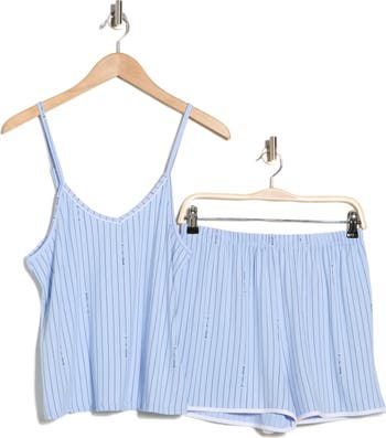 Pencil-thin stripes and logo lettering cover a camisole paired with matching boxer shorts that are cut from ultrasoft fabric enhanced with easy-moving stretch.