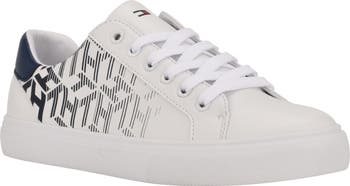 Classic low profile court sneakers feature side print details that are created from geometric logo details.
