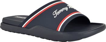 The brand's logo and colors add signature charm to the vamp of this slide sandal made for poolside lounging or boardwalk adventures.
