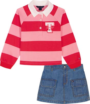 • 7 For All Mankind Ribbed Henley, Shirt Jacket & Denim Skirt Set