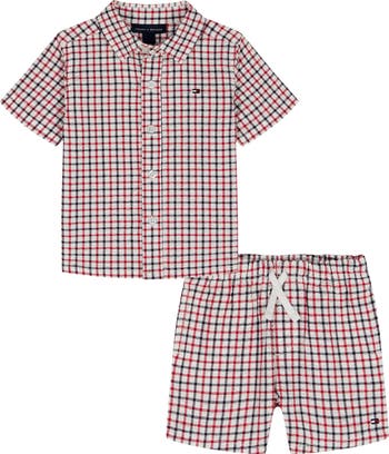 From daycare to playdates, this plaid button-up shirt and matching shorts set is ready keep them comfortable no matter what the day brings.