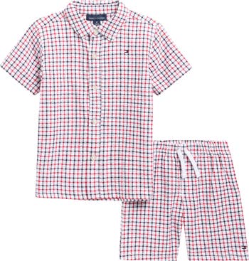From preschool to playdates, this plaid button-up shirt and matching shorts set is ready keep them comfortable no matter what the day brings.