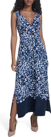• DONNA MORGAN FOR MAGGY Sleeveless Draped Front Asymmetric Hem Dress