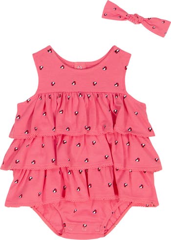 The brand's iconic Americana hearts lend sweet style and heritage charm to a bubbly skirted bodysuit complete with a matching headband.