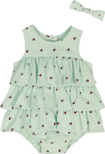 Have baby look extra sweet in signature Tommy Hilfiger style with this lovely skirted bodysuit designed with fluttering ruffled tiers and complete with a matching knot headband.