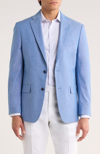 Distinctive texturing elevates the woven cotton-stretch sport coat that's cast in a versatile solid and styled to complement any semiformal look. Softer construction in the shoulders and a subtly fitted waist provide a relaxed feel with a traditional silhouette.
