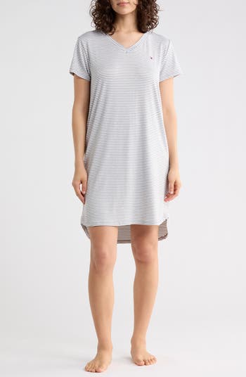 Whether lounging or snoozing, you'll love this V-neck nightshirt cut from soft fabric finished with the brand's signature flag embroidery at the chest.